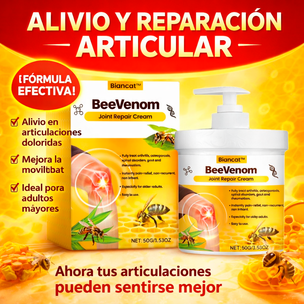 La crema Biancat® BeeVenom está diseñada para apoyar el alivio del dolor en las articulaciones, incluyendo molestias relacionadas con la artritis, la gota y la osteoartritis, contribuyendo a una sensación de mayor comodidad y movilidad.